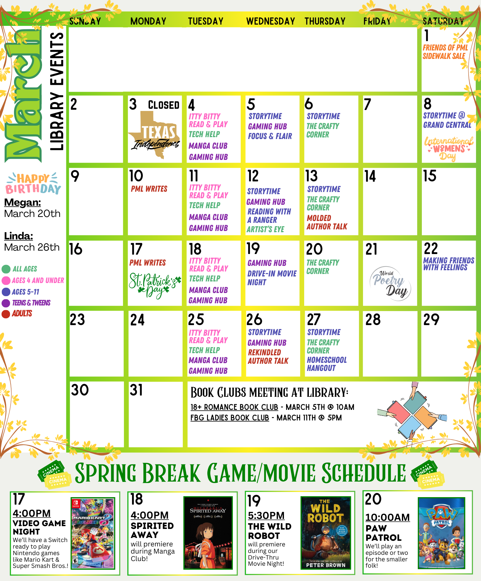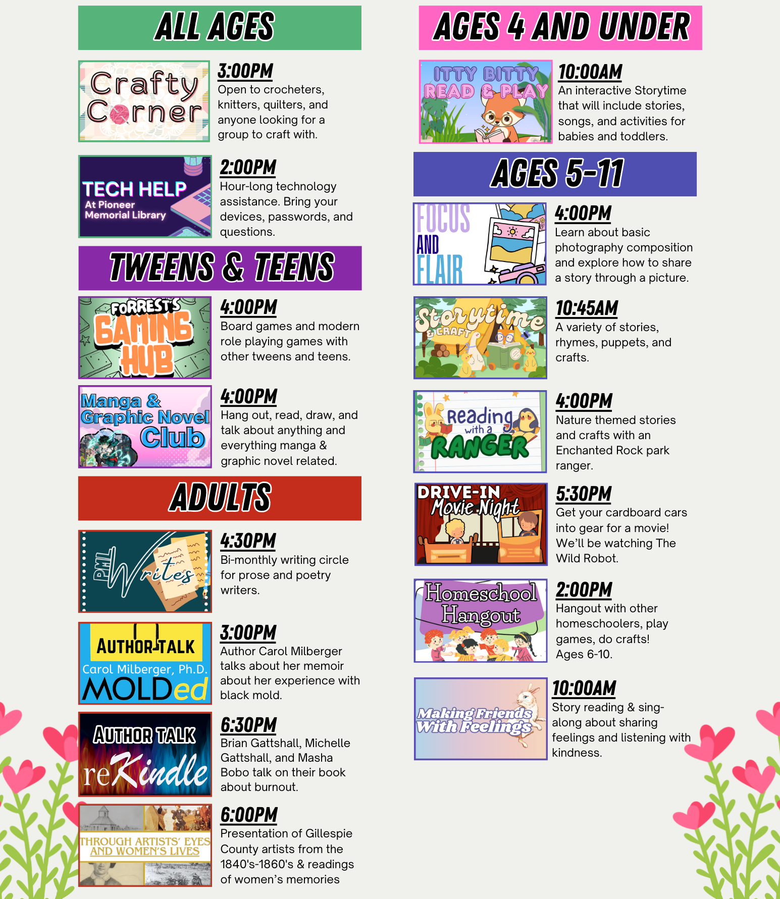 Annual Summer Reading event at library. Coming 2026!